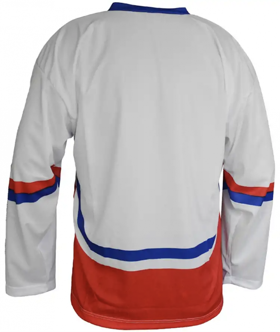 Hokejový reprezentační dres se státním znakem na hrudi.