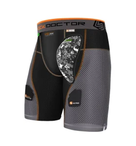 SHOCK DOCTOR kompresní hokejové šortky 375 Ultra PowerStride Hockey Short w/AirCore™ Hard Cup WINNWELL kraťasy se suspenzorem Jock Short Mesh SR