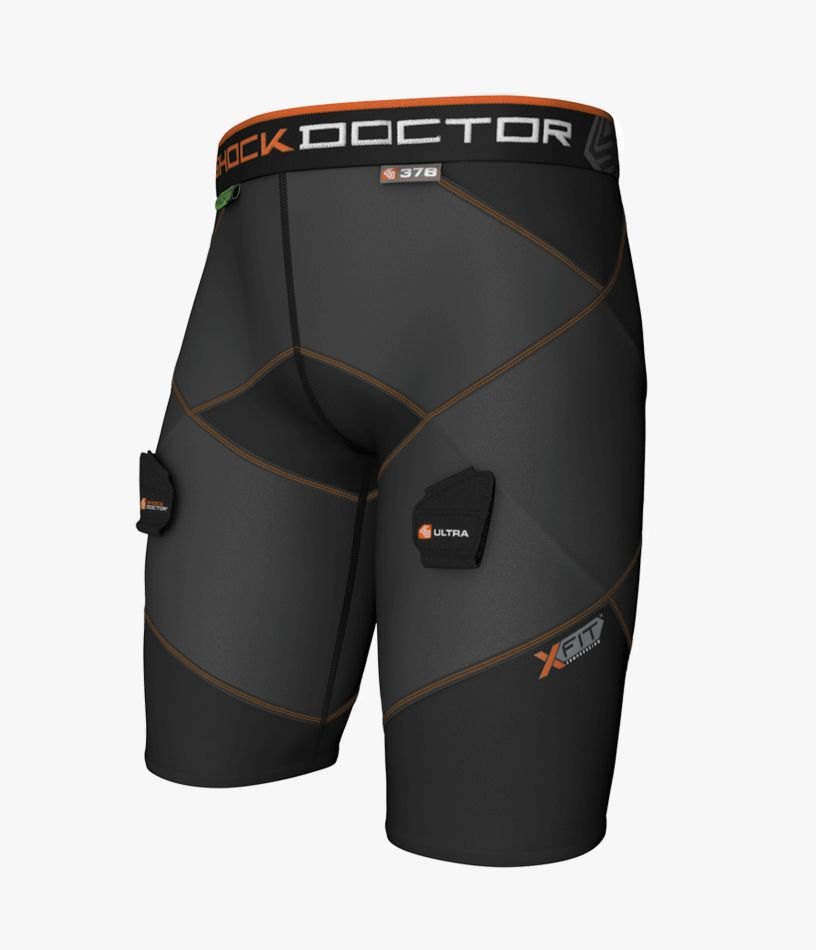 Kompresní hokejové šortky se suspenzorem Shock Doctor 378 Ice Hockey Cross Compression Short with AirCore Cup jsou navržené tak, aby udržely vaše svaly aktivní, zároveň byly lehké a komfortní. Poskytuje skvělou podporu stehenním svalům a kyčlím, čímž pomáhá předcházet nepříjemným svalovým zraněním. Exkluzivní technologie X-FIT stabilizuje svaly tak, že napodobuje techniku tejpování. Přední a zadní nášivky Velcro® pro snadné připnutí ponožek. Exkluzivní design suspenzoru s kapsou na košíčky zaručuje bezkonkurenční pohodlí, skvěle sedí a při pohybu nikam nesklouzává. Tvrdý košíček suspenzoru AirCore™ Hard Cup je vyrobený z nízkoprofilového kopolymerového jádra s pěnovým pláštěm pro ochranu proti nárazu. Je o 30 % lehčí než tradiční lisované košíčky. Šortky mají v pase pohodlnou širokou gumu.