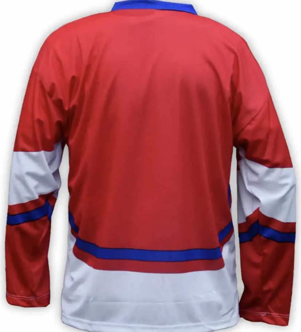 Hokejový reprezentační dres se státním znakem na hrudi.