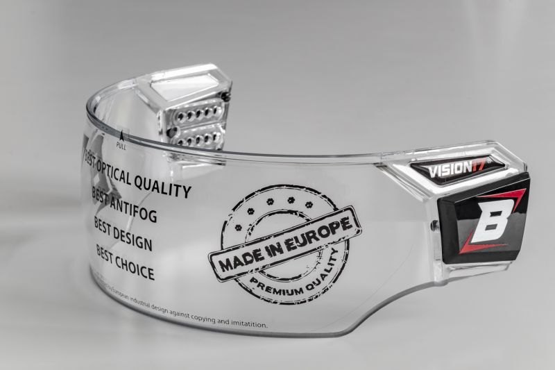 Tento model se pyšní hned několika skvělými vlastnostmi jako je unikátní design, vynikající optickou kvalitu, díky které má plexi prakticky nulové zkreslení, speciálně upravenou spodní hranu, která se při hraní stává neviditelnou a v neposlední řadě ochranné krytky překrývající šroubky, na které se dají natisknout loga Vaší značky, Vašeho týmu, nebo obchodního partnera.