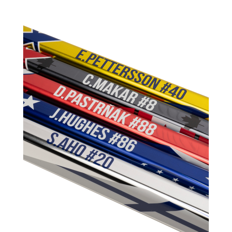 V kolekci najdeš pět různých edic inspirovaných hvězdami světového hokeje – od charismatických střelců až po technické virtuózy. Každý kousek přináší specifický styl a reprezentuje hráče, kteří patří mezi největší jména současné hry.