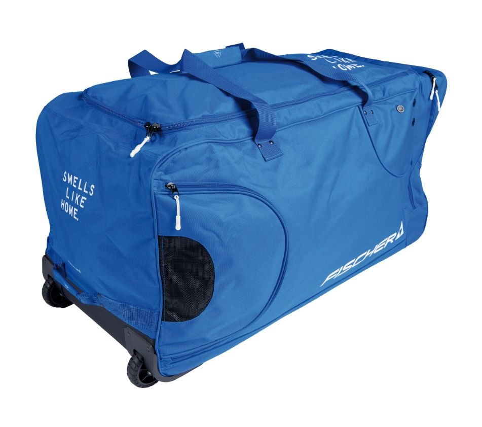 Prostorná hokejová taška s atraktivním designem na odolných kolečkách je opatřena zpevněným výsuvným madlem. Extrémně prostorná taška nejvyšší kategorie na kolečkách pro pohodlnou přepravu kompletní výstroje hráče. Taška je vyrobena z vysoce odolného 600 Denier Nylonu s propracovaným systémem odvětrávání a dvěma výztužemi ve spodní části pro větší pevnost. Hlavní otvor je ve tvaru "U", tak je prostor plně přístupný. Uzavírání je na velice odolný nylonový zip. Na bocích jsou integrované prostorné boční kapsy na brusle s kvalitním odvětráváním pro rychlé schnutí. V přední části naleznete velkou boční kapsu na další příslušenství, v níž je další integrovaná menší kapsa na zip vhodná pro osobní věci. Obal má dvě silná nylonová poutka spojitelná suchým zipem pro přenášení v ruce nebo na rameni.